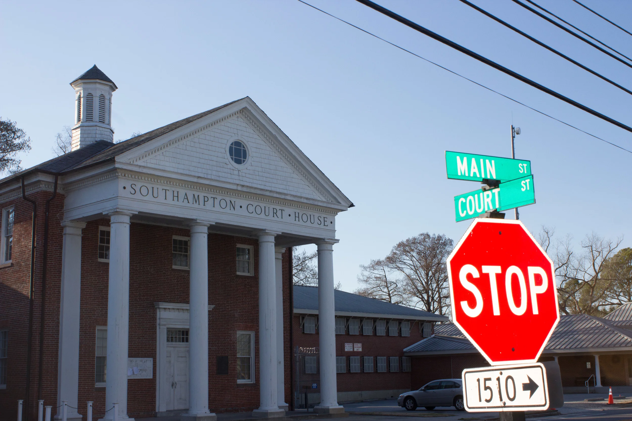 The Southampton Courthouse and jail where Nat Turner was tried and hanged stands in the same location, but it has been rebuilt.