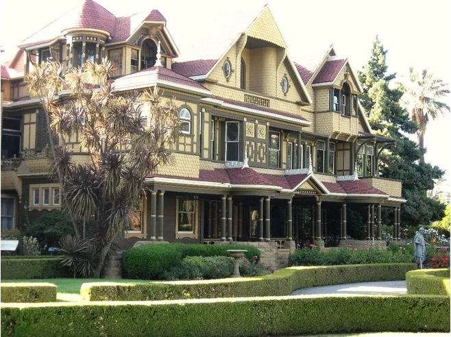 It's the former estate of Sarah Winchester, the widow of the heir of the Winchester rifle fortune. After her husband's passing, Winchester inherited at $20m fortune and her earning were $100 a day (in 2013 numbers, around $28k). Winchester used her endless income to build her dream house, which includes 160 rooms, including 40 bedrooms, 2 ballrooms (one completed and one unfinished) as well as 47 fireplaces, two basements and three elevators. Construction on the home lasted 38 years, and remained unfinished at the time of Winchester's death. Why is it called a mystery? Because Winchester allowed her belief in ghosts to guide the bizarre construction, which includes doors and stairs that go nowhere, windows overlooking other rooms and more.