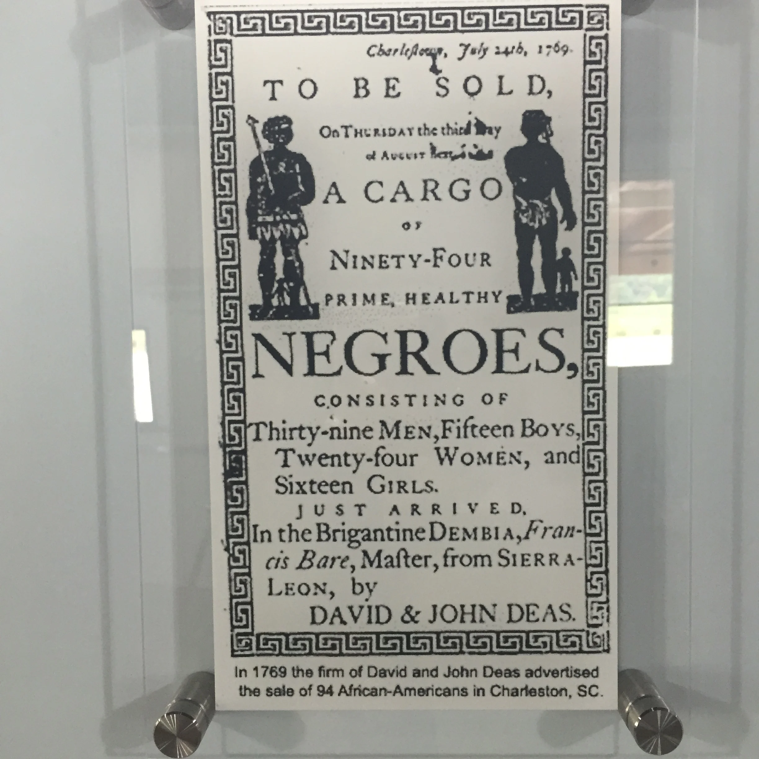 A public notice that there are enslaved men and women and girls for sale in Charleston: