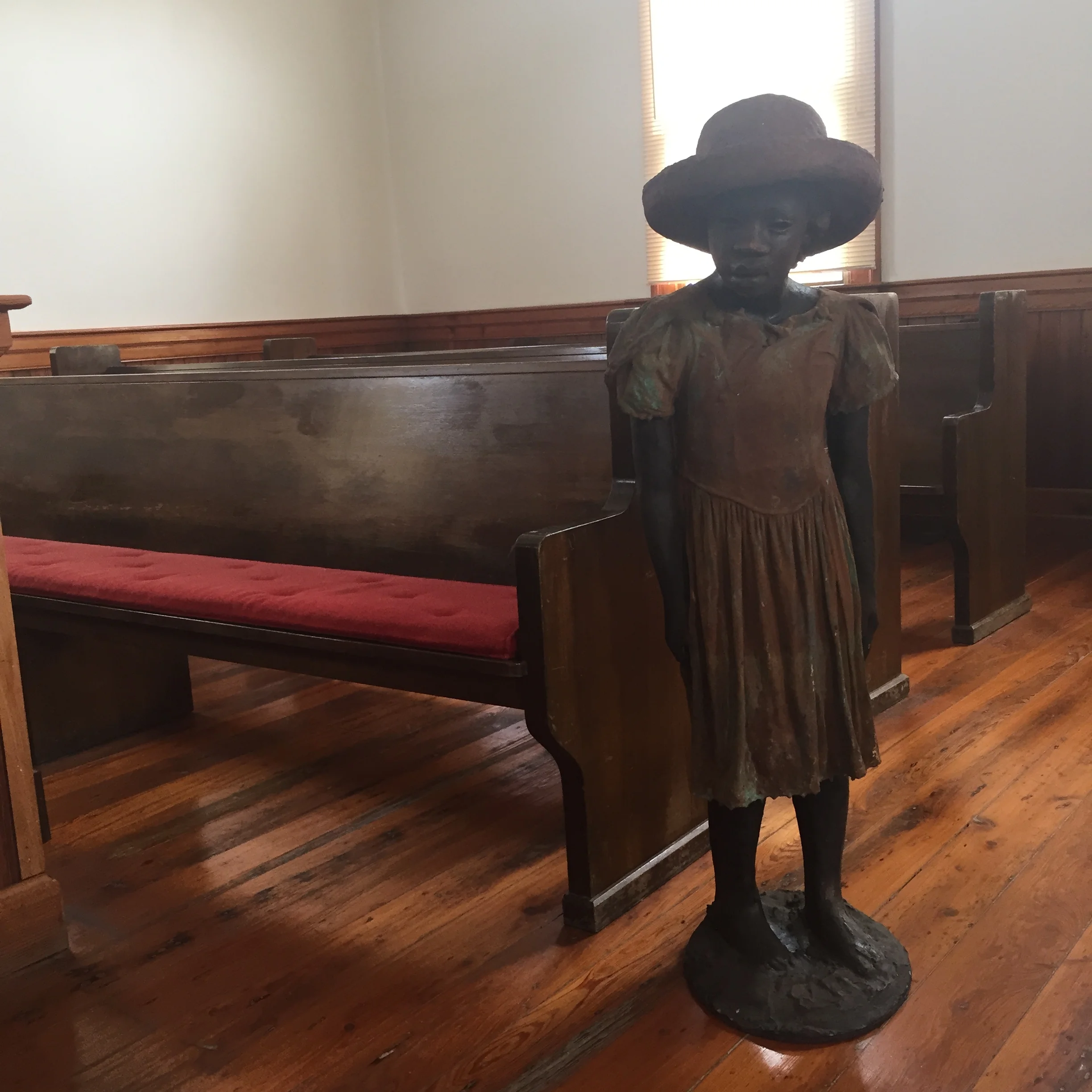 After watching a video about the history of the plantation( that left me in tears), the guide handed out placards that identified several statues of enslaved children that were placed throughout the church. My "child" was Catherine Cornelius. She would was 103 when she was interviewed by journalists from he Federal Writers Project.