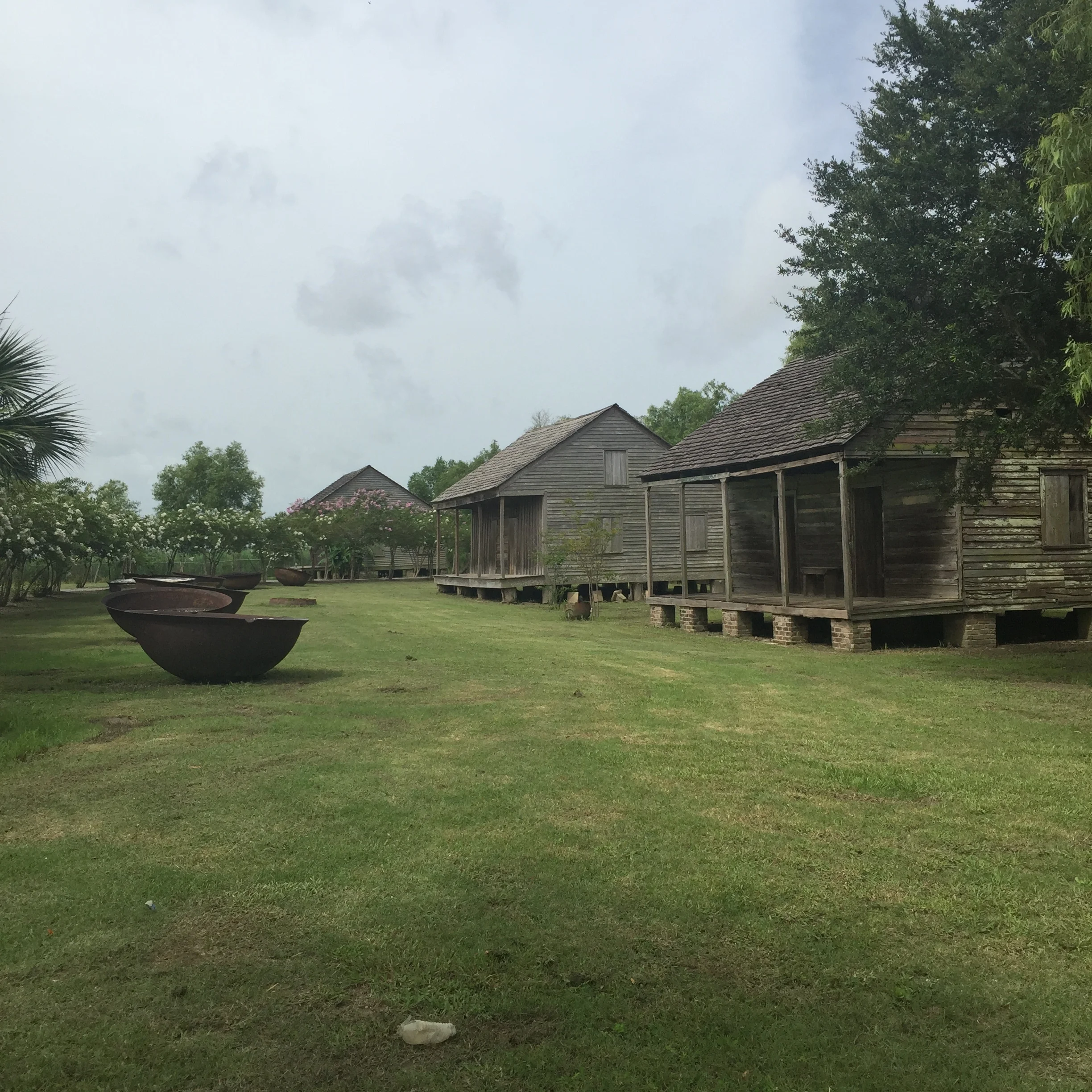 The big bowls outside the cabins were used in the process of making sugar cane. The guide didn't know the exact particulars, but the gist was sugar cane doesn't last very long once its been cut, so it requires immediate processing. During sugarcane season, enslaved men and women worked all day and all night indoors, in Louisiana heat, over hot fires. Heat exhaustion was a common cause of death.