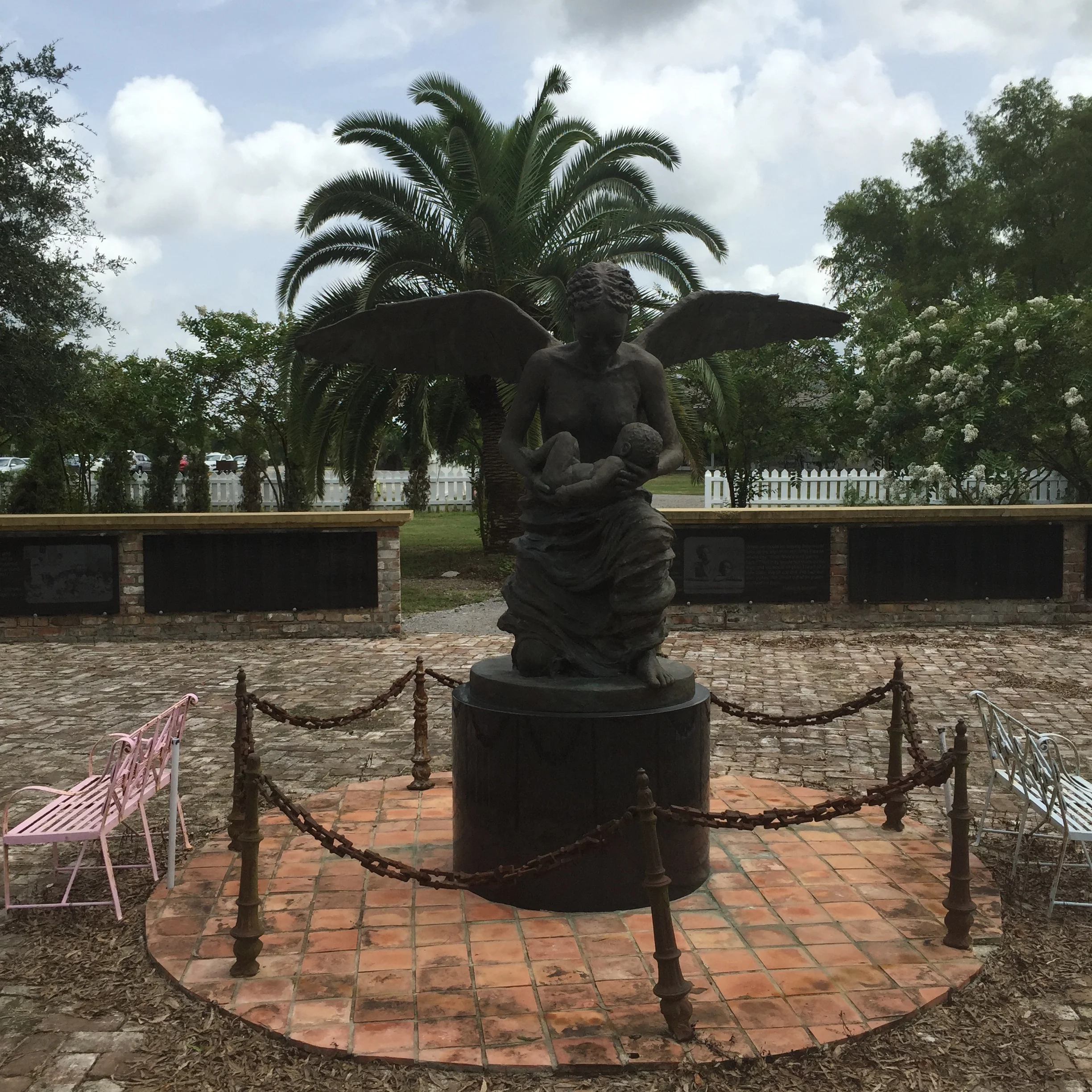 Our final stop was the The Field of Angels, a memorial dedicated to the 2,200 enslaved children in Louisiana who didn't reach their third birthday. The statue, by Rod Moorhead, is of a Black angel carrying a Black baby to heaven. The names of the children are etched throughout the monument