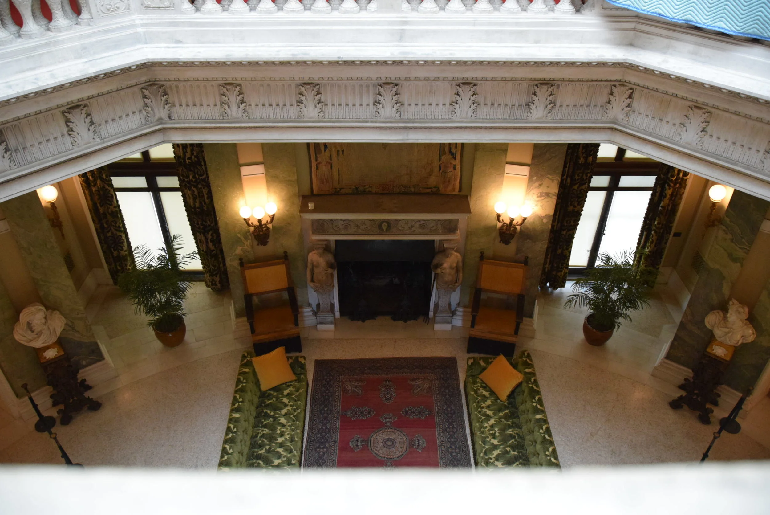 What it lacks in comparable size, the mansion makes up for in detail. Frederick Vanderbilt liked to party— a lot, evidenced by those ornate Corinthian columns denoting the home was a place for celebrations, and all those details along the facade. Guests were supposed to drive up and feel like they were visiting European royalty. Vanderbilt was pretty obsessed with Europe in general. There's only one non-European piece of furniture in the entire house. Its' a Steinway piano. LOL.
