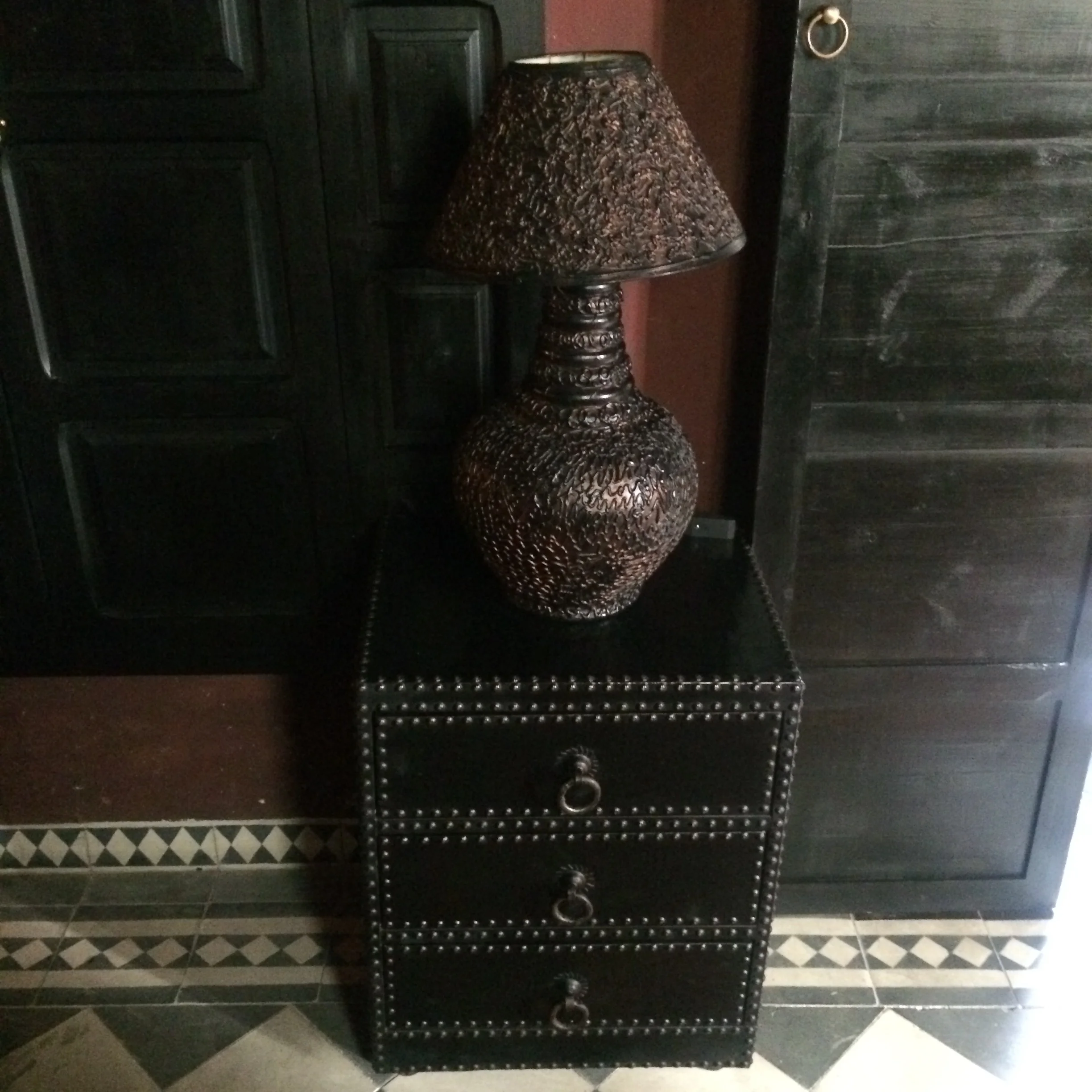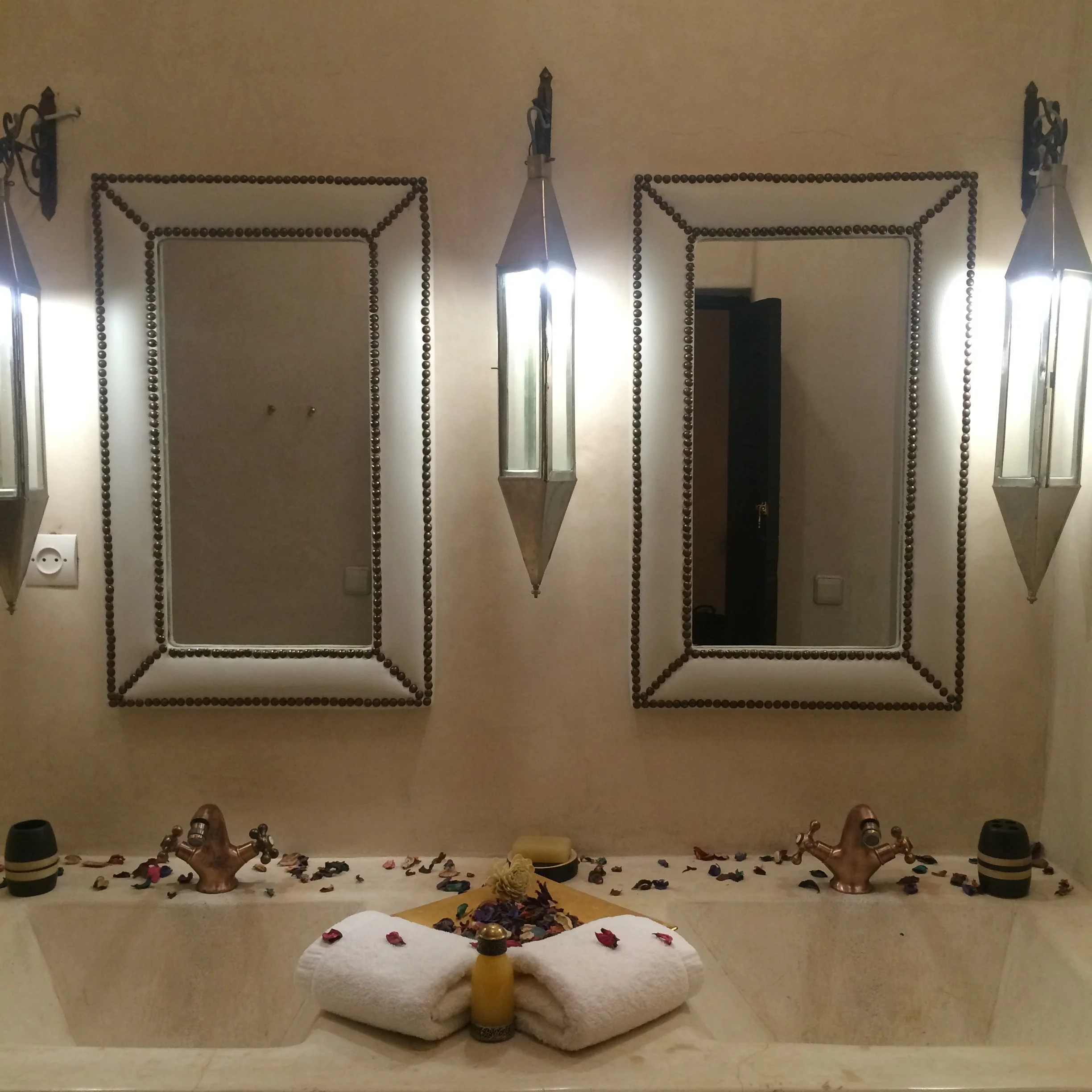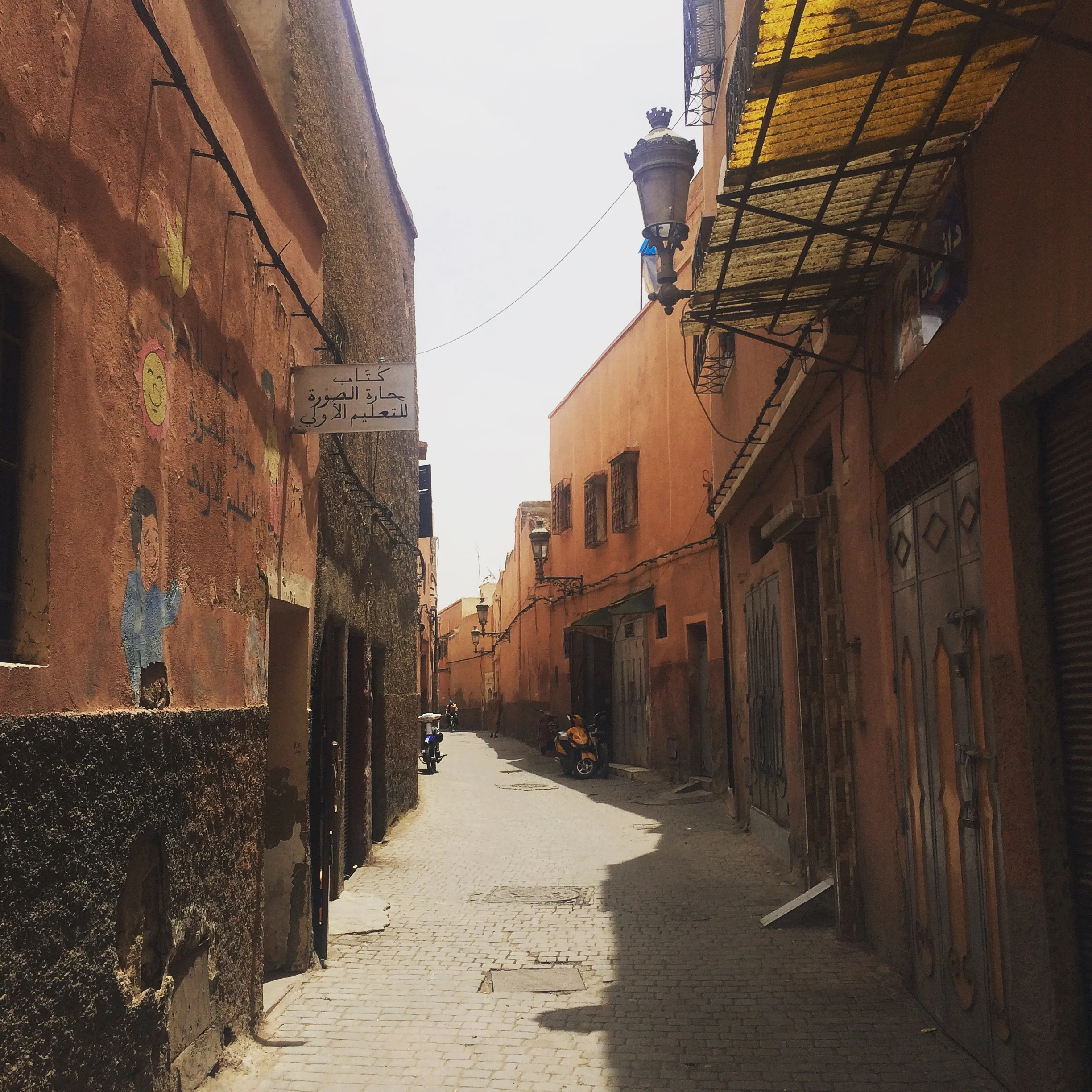 We drive for what seems like forever, then the cab stops in the middle of the road. I look around, I don't see anything that looks remotely like a hotel or the size of a hotel. And honestly? The hotel could have been right in front of me and I never would have known. In the medina, people don't show their wealth. You could live in a palace, but from the outside, the building will just look like a slab of stone with no windows. You might be able to gauge its important place by the design of the door. Maybe. But probably not.