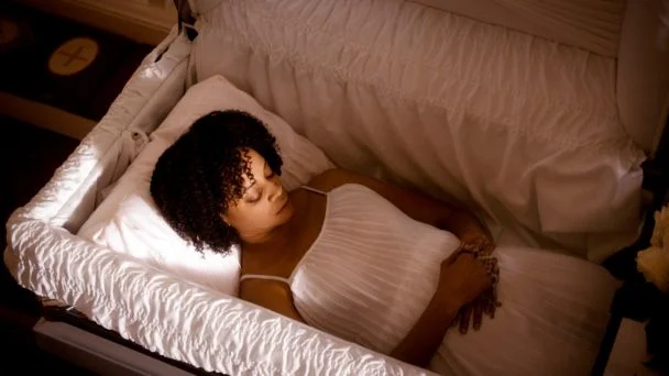 MJ is with the body at the church already. Lawd! Lisa is in the dang casket in all white, looking like an angel. Wow.
