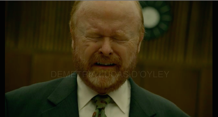 Darden, Clark and Hodgman are working on Sunday and watching the interview at theDA’s office. Darden looks alarmed. You should have listened to your Daddy, my dude. He tried to warn you two episodes ago.